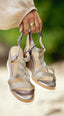 The woven string detailing on Elma, Madison, Perla and Amalia sandals adds texture and elegance. However, it requires special attention when cleaning to prevent damage to adjacent leather sections.