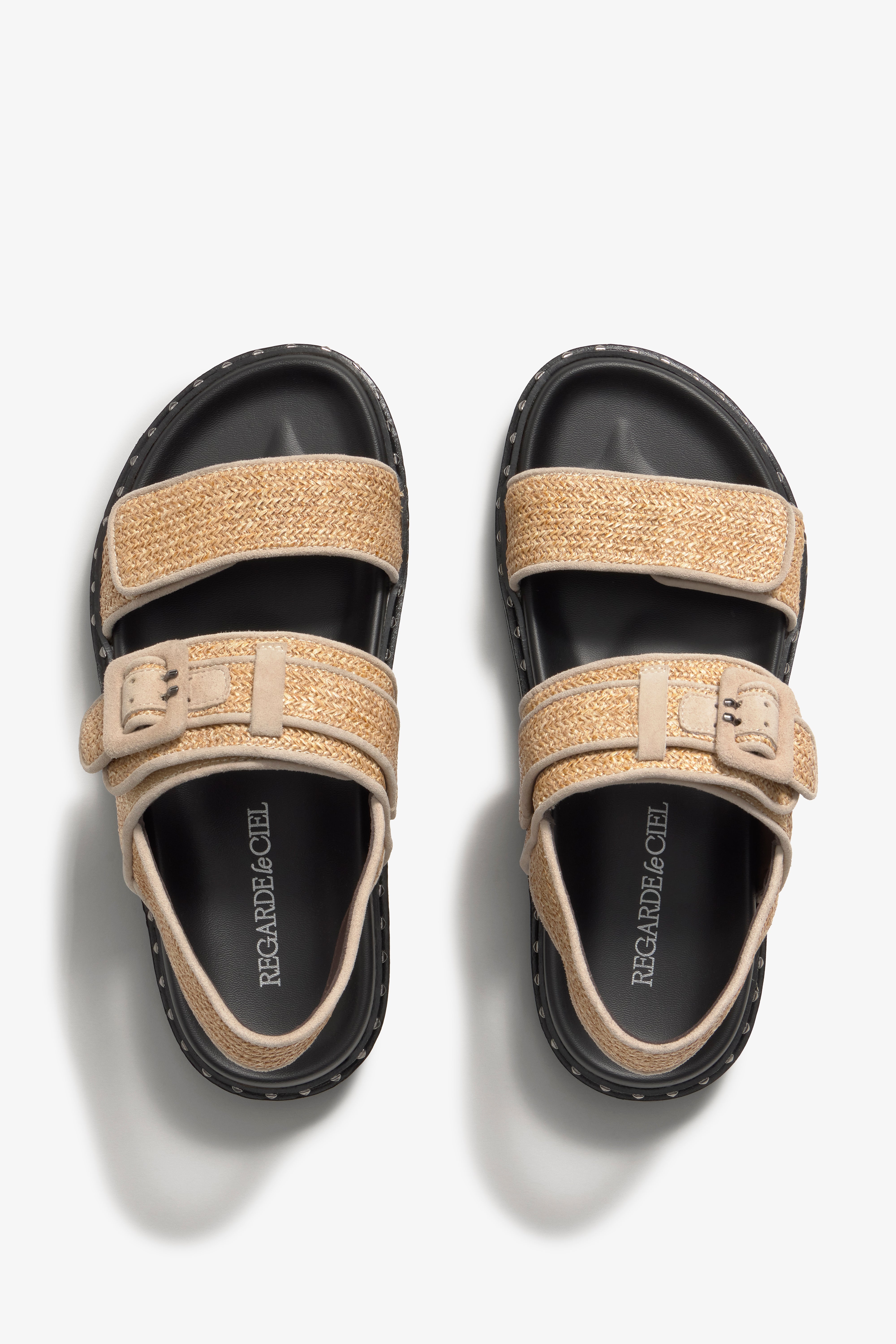 A contemporary two-strap sandal crafted from Ravel woven material in a warm brown hue, showcasing a harmonious blend of chic style, comfort, and elegance. The design features two broad, adjustable straps and a buckle detail for a secure, customizable fit. Prioritizing elevated comfort, it is built upon a lightweight, contoured footbed and a substantial platform sole. This sandal is intentionally designed as an everyday statement piece that grounds any ensemble with assured sophistication.